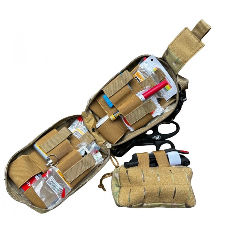 - Подсумок под первый эшелон (подарок) с целью уменьшить объем и профиль аптечки. Крепится как на молле,так и под ремень.