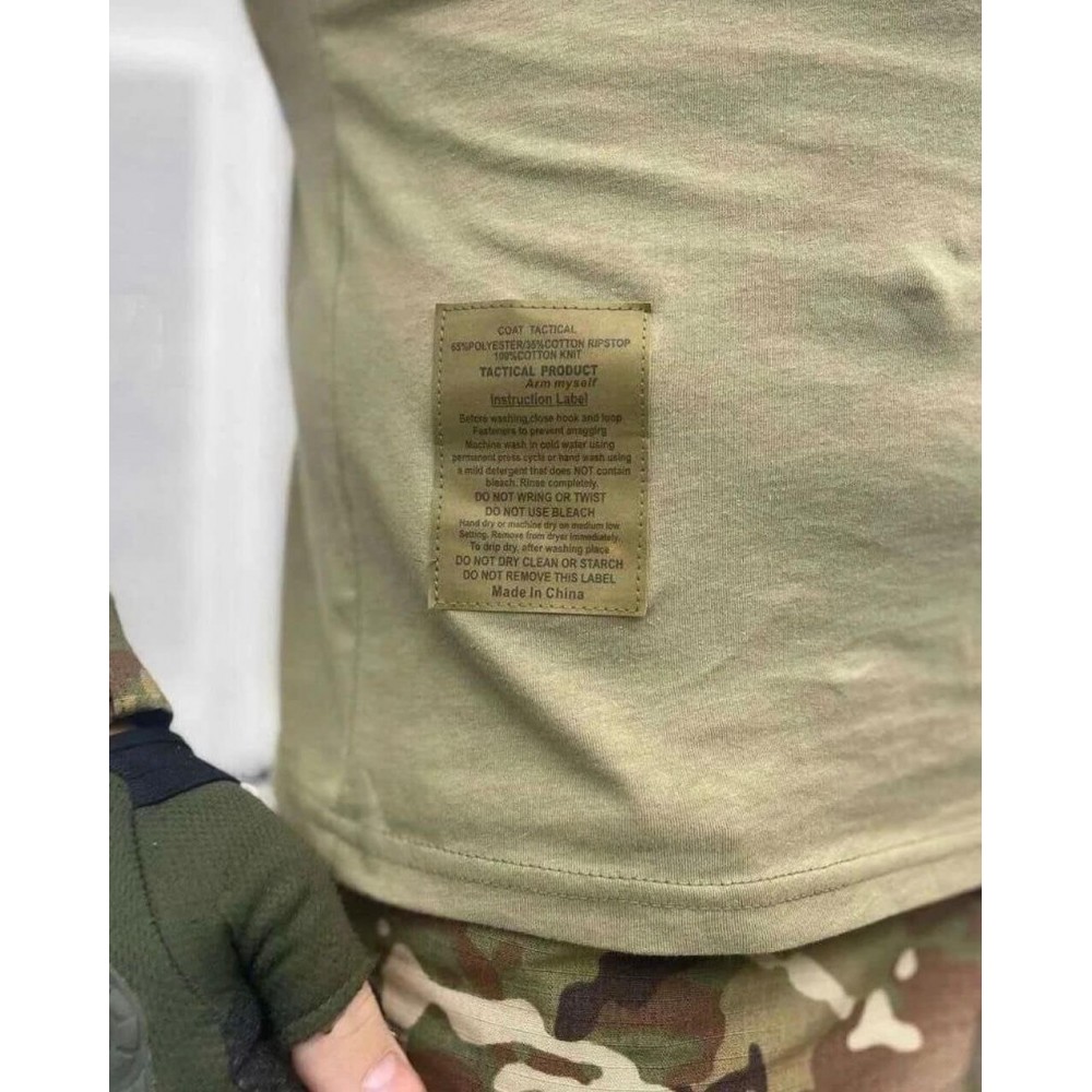 Рубаха удобного кроя, не стесняющего движений, изготовлена из 2-х типов тканей: износостойкой RipStop (воротник и рукава - 65% полиэстер, 35% хлопок). Камуфляжная рубаха имеет 2 удобных, накладных нарукавных кармана с местом под патч, съемные налокотники и регулируемые нарукавные манжеты на тактильных застежках Velcro. Брюки изготовлены из ткани RipStop (65% полиэстер, 35% хлопок). С помощью застежек на ленте (Velcro, липучках) можно отрегулировать размер талии, полноту штанин и ширину нижних манжет.