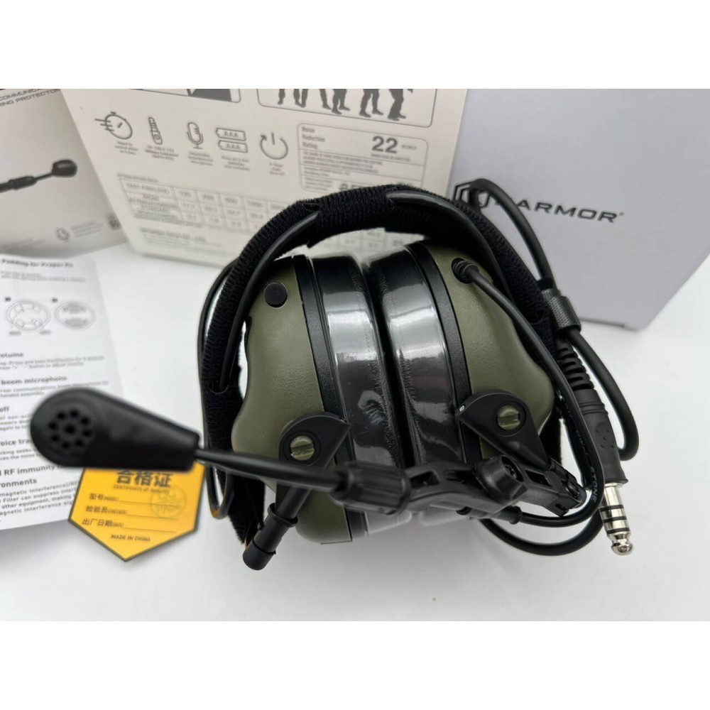- Интегрированный разъем для РТТ: Наушники имеют интегрированный разъем для РТТ (Push-to-Talk) стандарта НАТО 7.0 (U174/U), что обеспечивает совместимость с тангентой EARMOR и радиостанциями Kenwood.